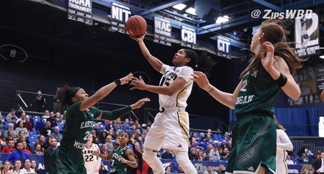 The University of Akron women’s basketball team defeated the Eastern Michigan Eagles 75-72 on Saturday afternoon at Rhodes Arena. The Zips improved to 11-9 on the season and 5-4 in MAC play while Eastern Michigan fell to 13-7 and 4-5 in the MAC.